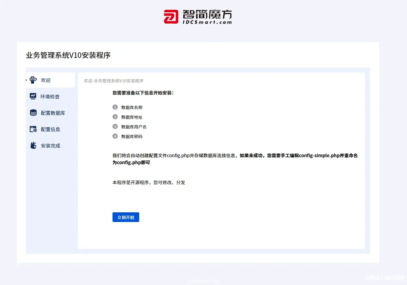 访问您绑定的域名,进行V10业务管理系统的安装配置。